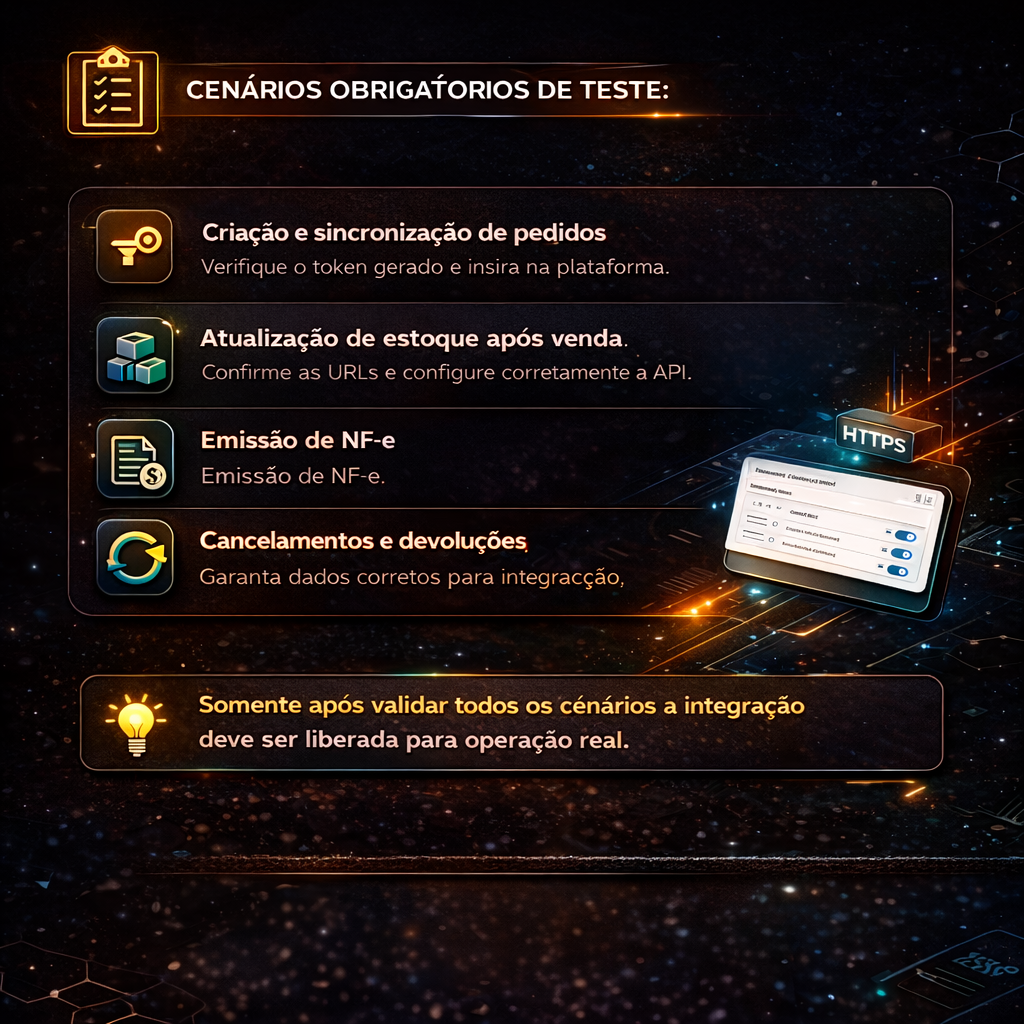 💡Somente após validar todos os cenários a integração deve ser liberada para operação real.